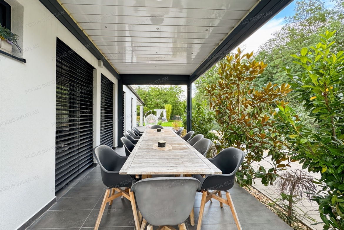 Terasz: A teraszon egy 15 m²-es, motoros vezérlésű bioklimatikus pergola teszi lehetővé a kinti pihenést bármilyen időjárásban.