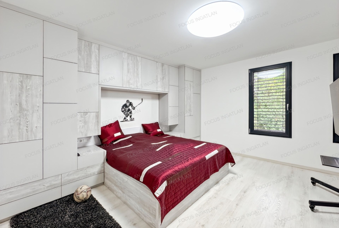 Emelet: A privát szféra, ahol további kényelmes hálószobák és egy luxus színvonalú fürdőszoba kapott helyet.