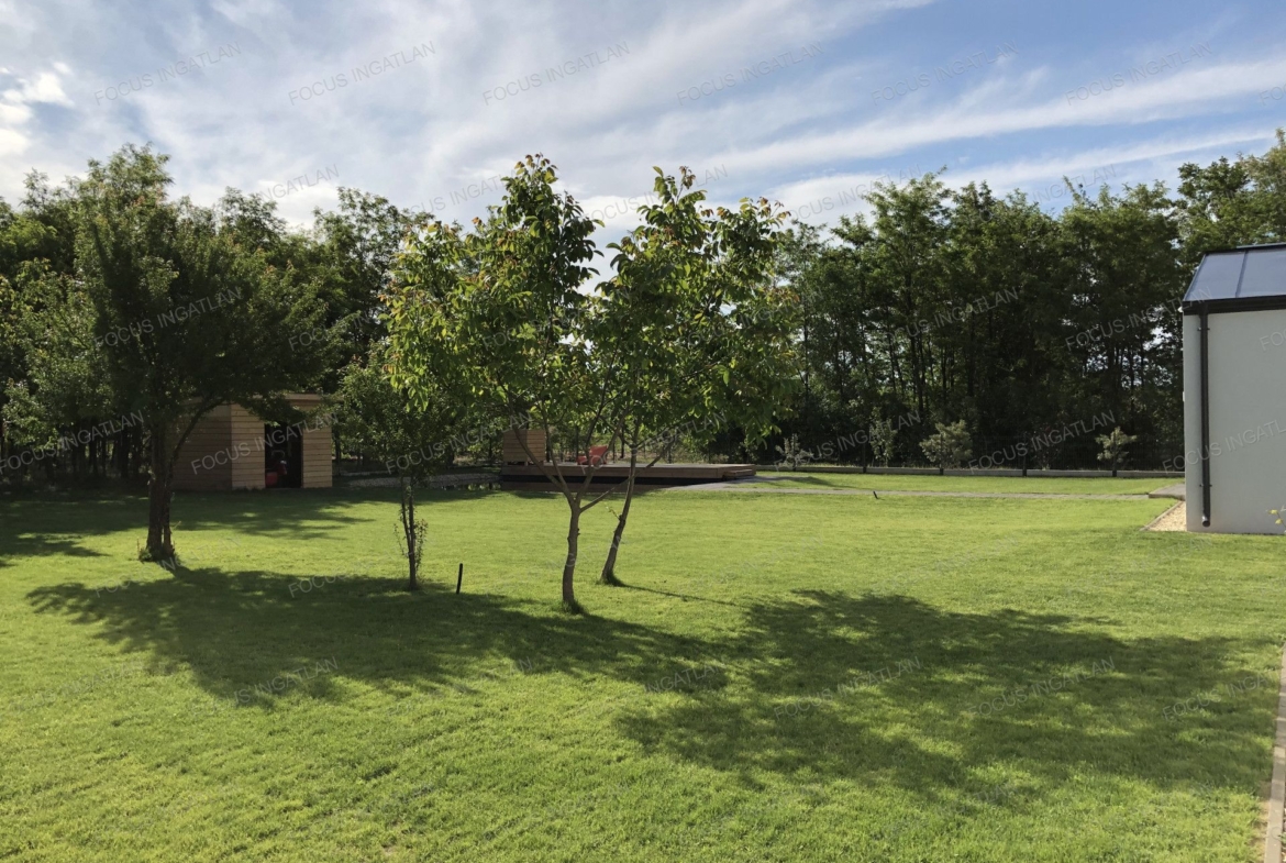 – 900 m2 parkosított telek, automata öntözőrendszerrel.